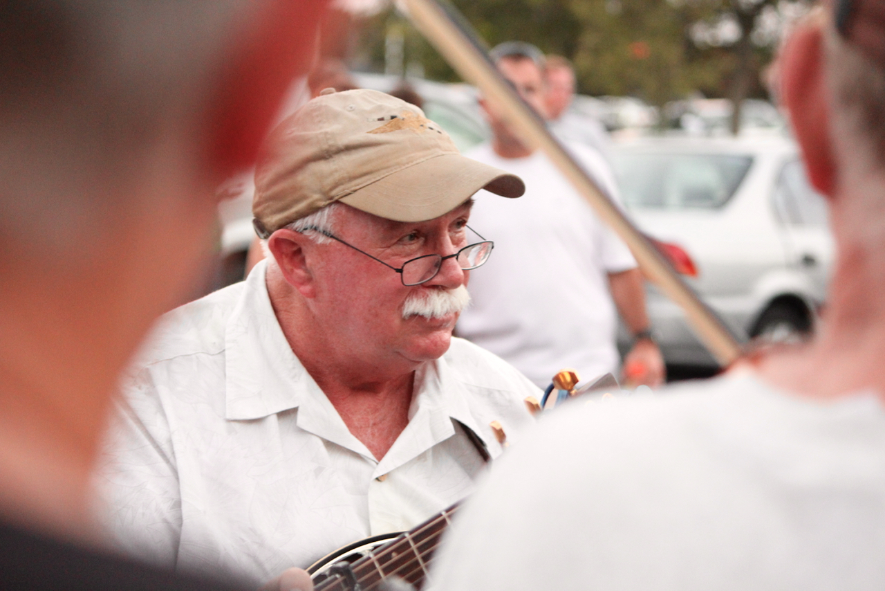 Musicians from Hampton Roads, North Carolina and beyond gather in the parking lot of the Virginia Beach Farmers Market for an enduring bluegrass jam. [John-Henry Doucette/The Princess Anne Independent News]