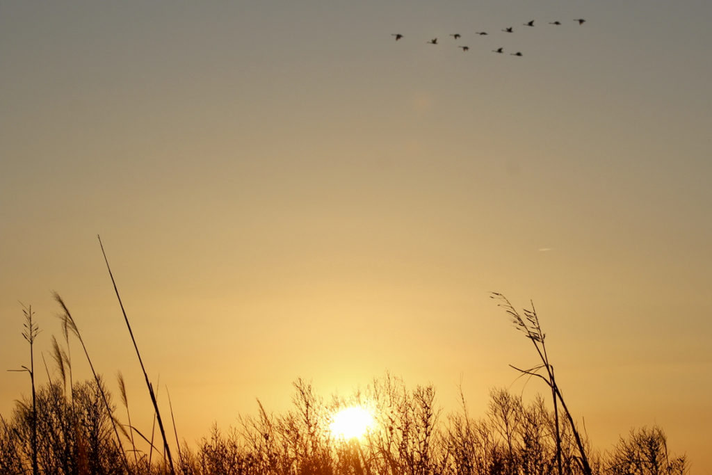 Geese flew away from the causeway as the sun began to set, and, elsewhere, a number of other birds were seen in the refuge. They hunted, rested and hunted some more.