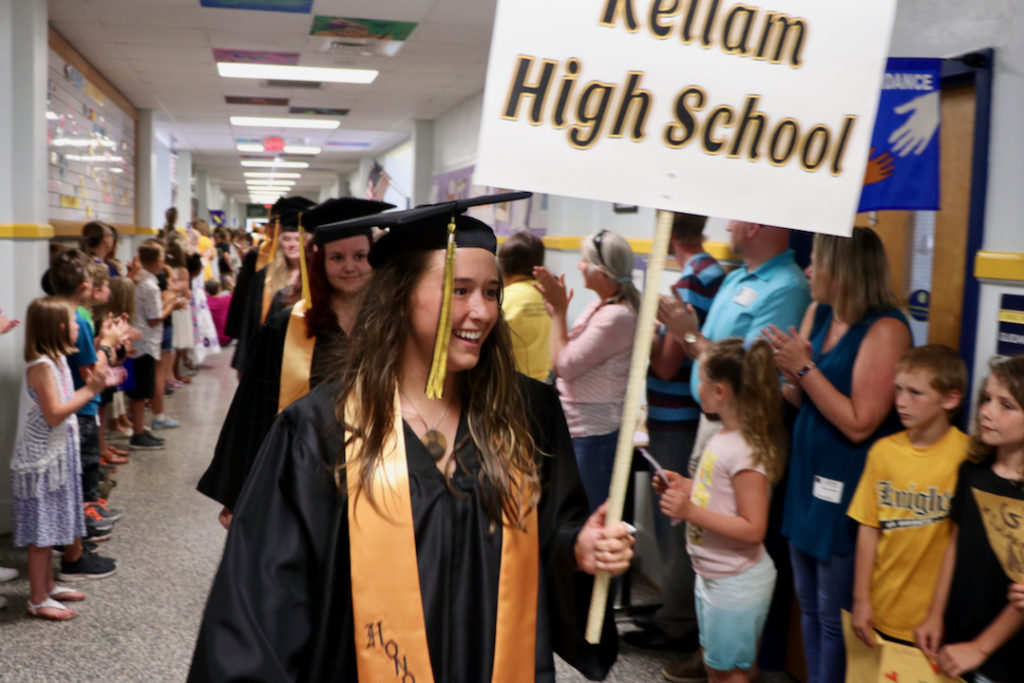 The Kellam Grad Walk, as it is called, brought graduating seniors who had attended Creeds back to be cheered on by young students and educators, and also to show what is at the end of a successful public school career.
