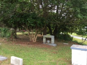 The cemetery, located on Woodleigh Road between Knotts Island United Methodist Church and the elementary school, effectively took over for another location. [Knotts Island is a rural place, so there also are a number of private family cemeteries on the island, too.]