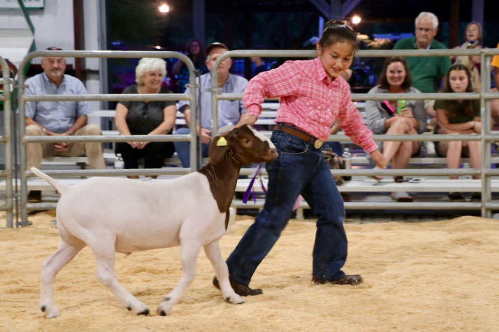 Goats: Selena Perez, novice grand champion; Austin Cox, novice reserve champion; Avonlea Flanagan, junior grand champion; Kylie Putz, junior reserve champion; Grace Schratwieser, intermediate grand champion; Riley Grimstead, intermediate reserve champion Camille Mitchell, senior grand champion; Holland Spruill, senior reserve champion