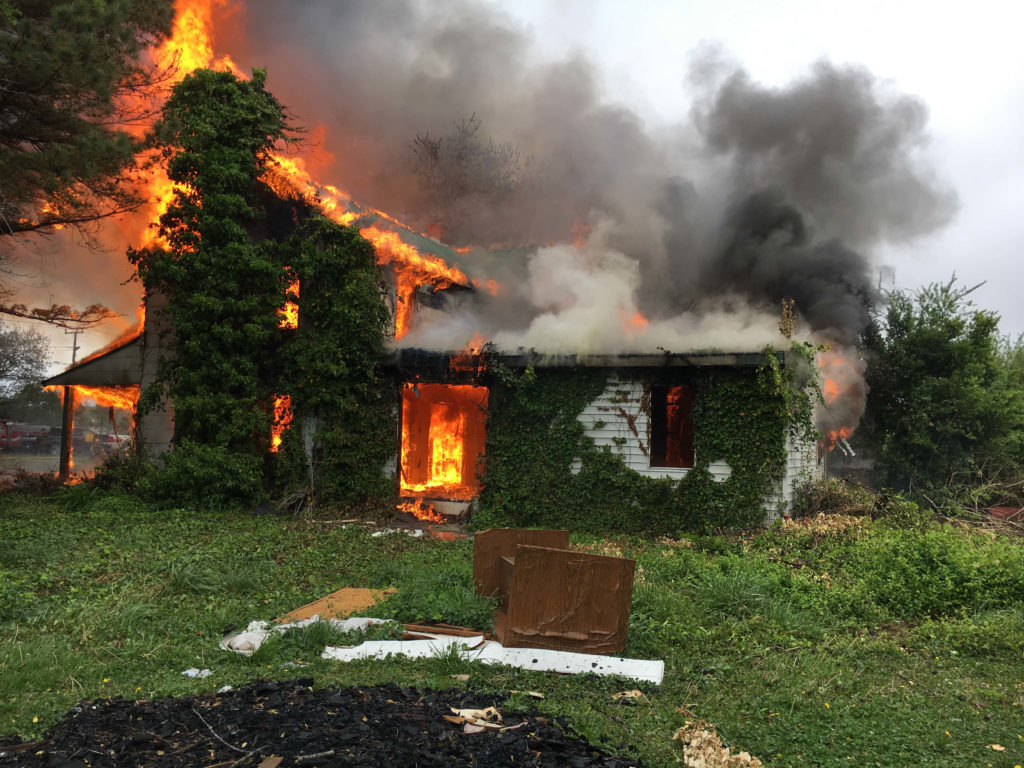 A home on the 2000 block of Princess Anne Road was burned during a Virginia Beach Fire Department training event on April 15. [Via Virginia Beach Professional Firefighters]