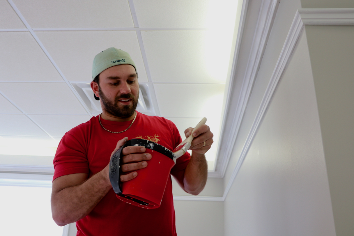 Nick Cleanthes paints at the future home of Redhead Bay Cafe, working toward opening in April at the former site of Creeds Cafe at 605 Princess Anne Road. [John-Henry Doucette/The Princess Anne Independent News]