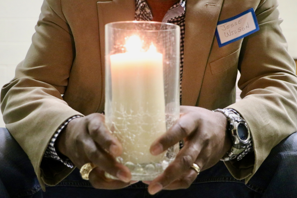 At the end of the meeting, Denny Chalk lit a candle that people passed around the circle. They held it silently, spoke, reflected.