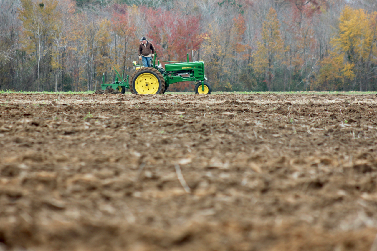 By 9 a.m. on a chilly morning, Plow Day was already well underway, with over a dozen antique tractors of various sizes, makes and models turning over dirt at Bright’s farm in Creeds.