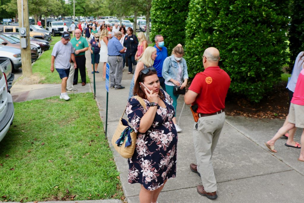 People wait to vote for a new Republican Party of Virginia Beach chairperson on Monday, July 13. Both candidates for the post, which will undergo a re-vote this month, want greater party involvement in nonpartisan races. [John-Henry Doucette/The Princess Anne Independent News]