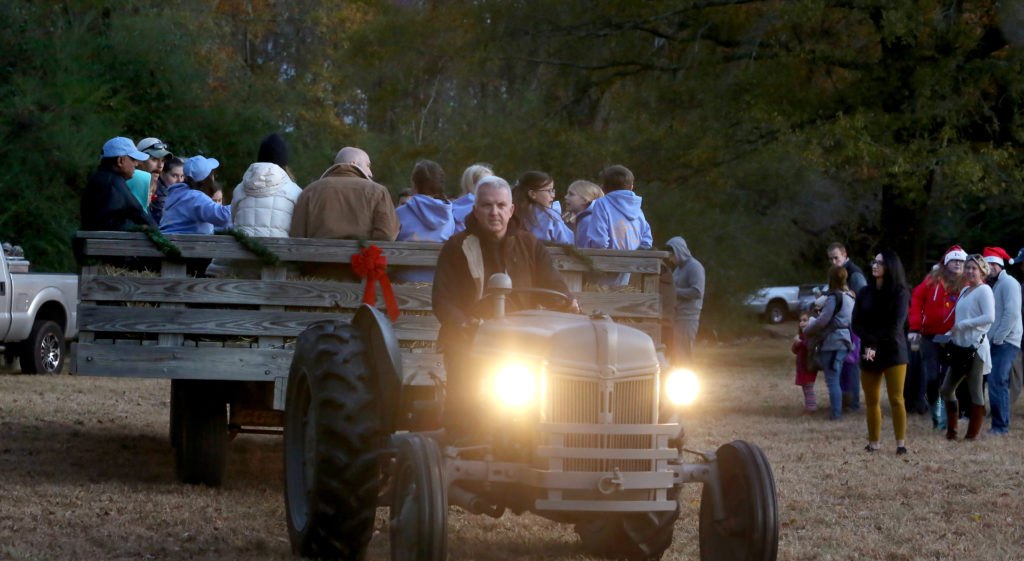 Brown, who co-owns Pungo Pizza & Ice Cream, crossed and walked to a parking area. Santa waited near a hay wagon pulled by tractor. That was Santa’s ride to the gathering on Saturday, Dec. 4, in the heart of the village.