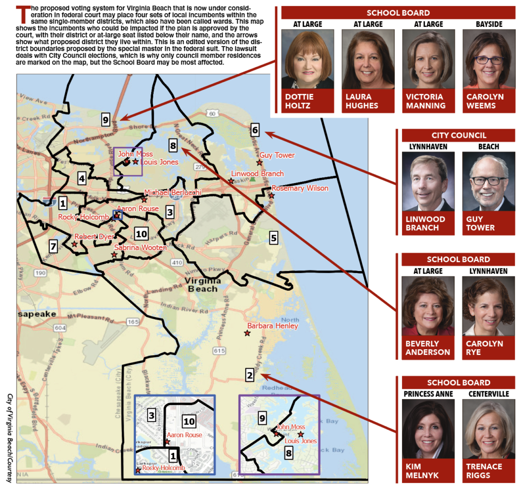 Virginia Beach has for decades employed an unusual mix of seven district seats and “at-large” seats in which all city voters vote in all council and School Board elections, even if they lived outside a district. That will soon change due to the federal voting rights suit and new state law.