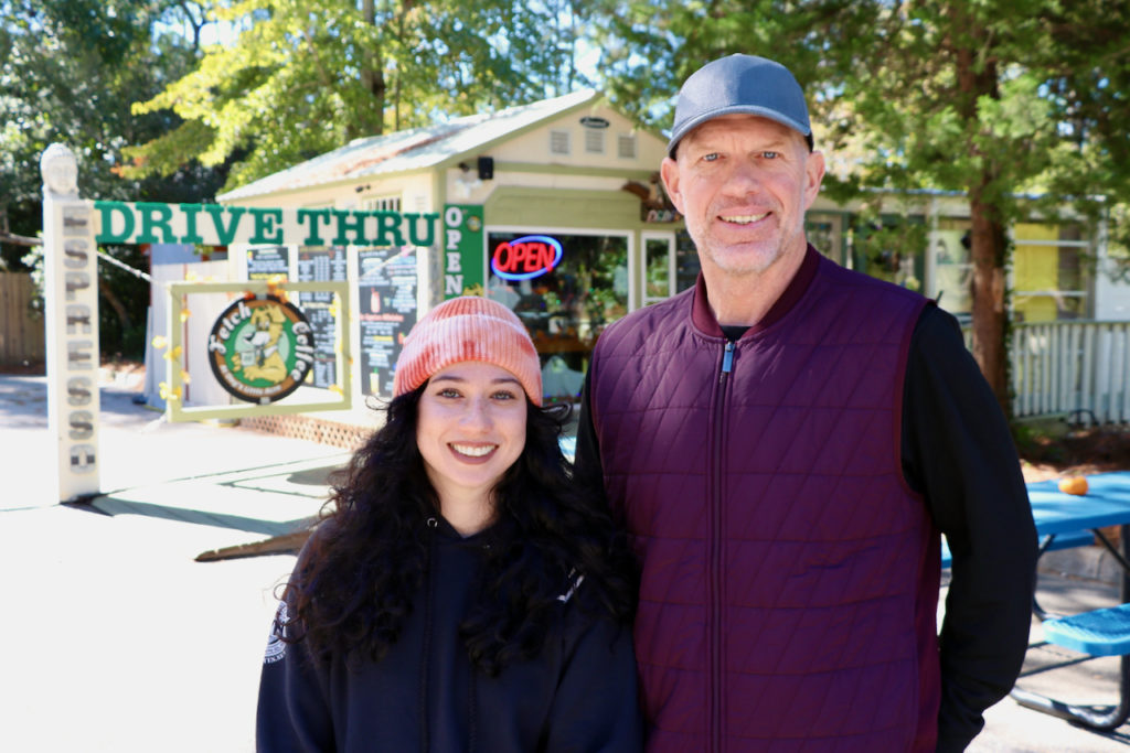 So he opened the coffee shop in November 2020. Now, with the help of managers Danielle Gonzales and Barbara Dunbar, he serves beverages to customers who drive through or stop to lounge at an outdoor seating area.