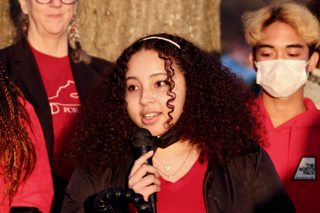 Giana Lathan, a 17-year-old student at Tallwood High School, said, “This isn’t the American Dream. I should not be up here speaking as a former ESL student telling adults that teaching me is sustainable.”