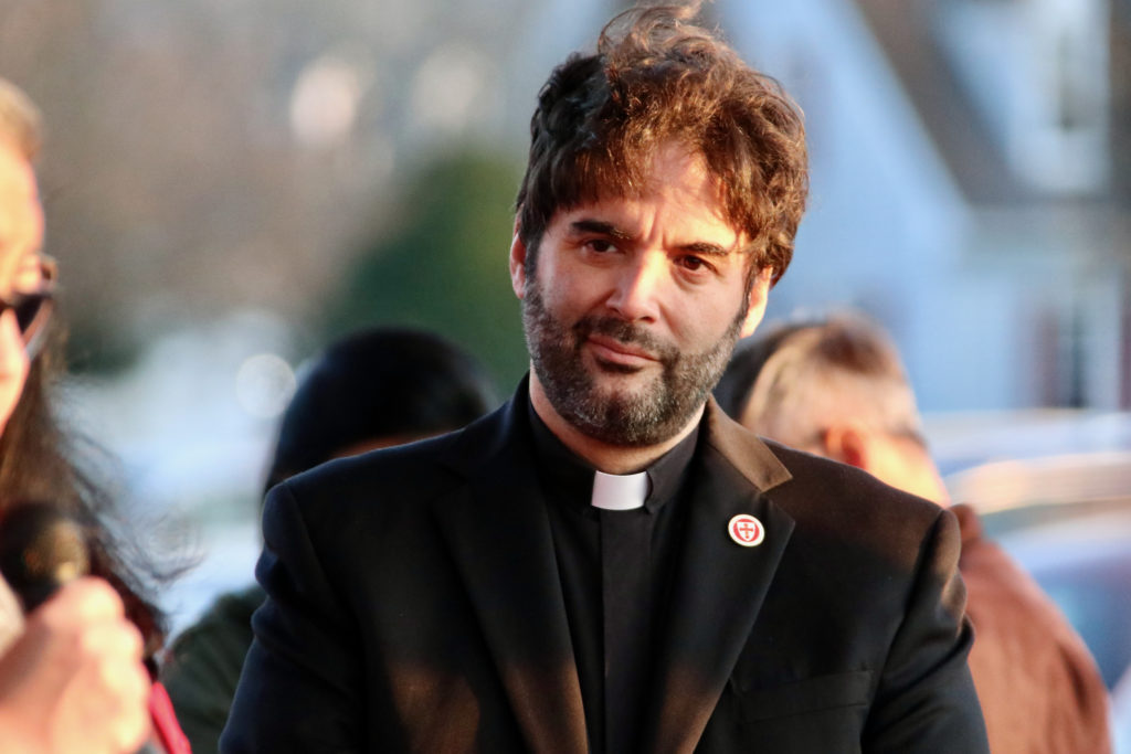 Father Mario Melendez of Church of the Holy Apostles was among the people who attended a press conference held in response to School Board Member Vicky Manning’s controversial post. “Me, as a Latino, if I was from Central America, it’s as though she sees me as a burden,” he said on Tuesday, March 8, 2022. [John-Henry Doucette/The Princess Anne Independent News]