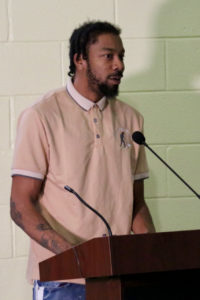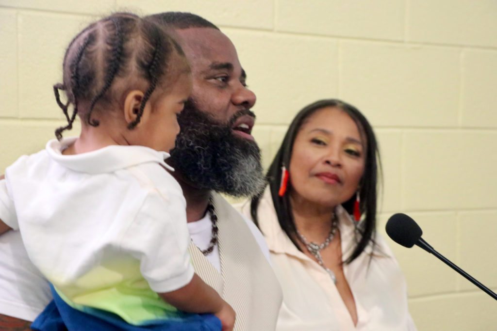 Sanderlin clearly was touched and overwhelmed when he tried to greet everyone from the podium at the community center, and he told those gathered there he loved them.