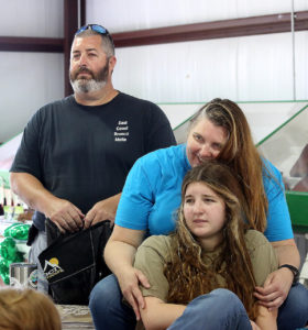 But first, both hogs had to be weighed so they could be classed for the market competition. The family loaded Gary and Tater Tot onto a pickup truck and drove to the Ruritan complex, where each pig was assigned a holding pen. Gary weighed 244, and Tater Tot, who in February weighed 89 pounds, now weighed 284 – a “rate of gain” for which Trey Spreder’s hog ultimately would be recognized during the show.