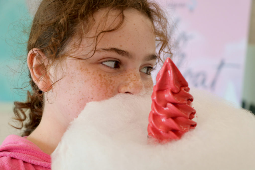Aqua S’s ice cream includes a wide range of flavors and cones that come surrounded by freshly-spun cotton candy, here enjoyed by Ryleigh Moorehouse, 10, visitIng Virginia Beach with her family this past month. [John-Henry Doucette/The Princess Anne Independent News]