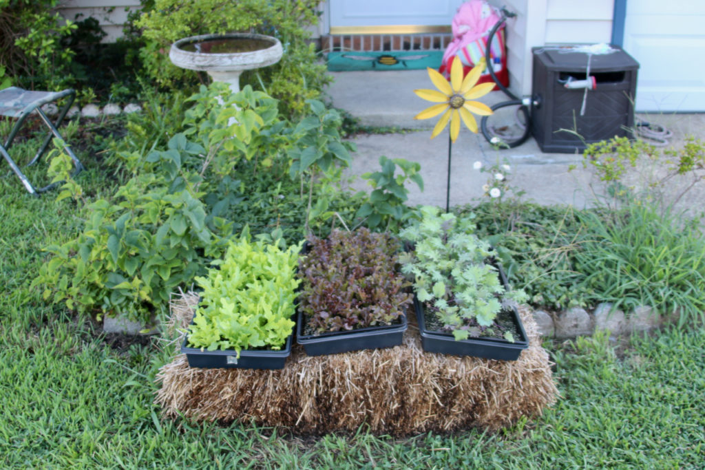 Green oak leaf lettuce, red oak leaf lettuce and red Russian kale plants grown by Kerr from seed await planting. [John-Henry Doucette/The Princess Anne Independent News]