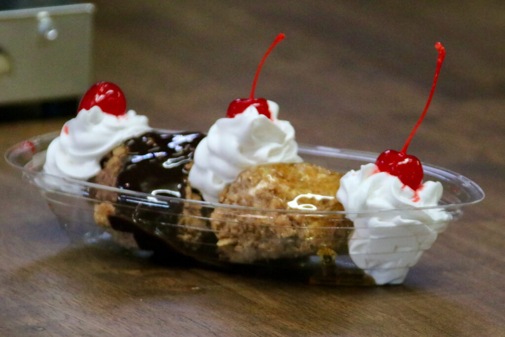 The menu features ice cream and homemade desserts, including cakes, pies and puddings.