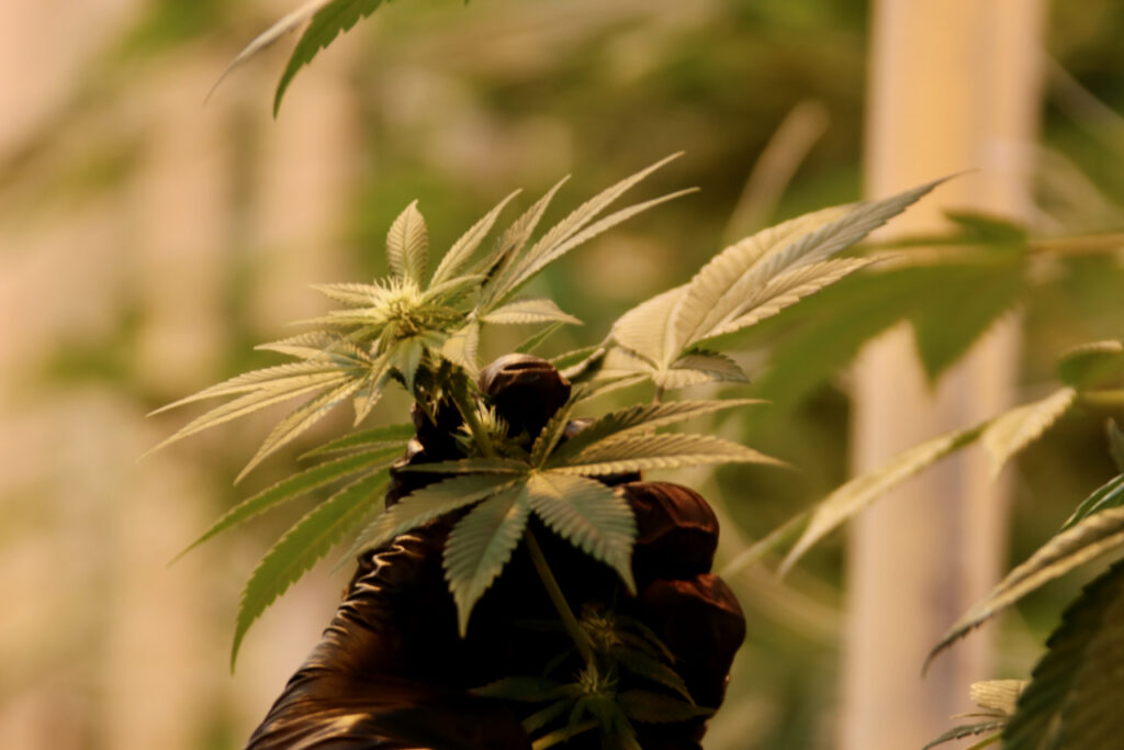 A hemp plant is seen at the testing greenhouse run by Veg Out Organics in Virginia Beach in January 2023. [John-Henry Doucette/For the Virginia Center for Investigative Journalism at WHRO]