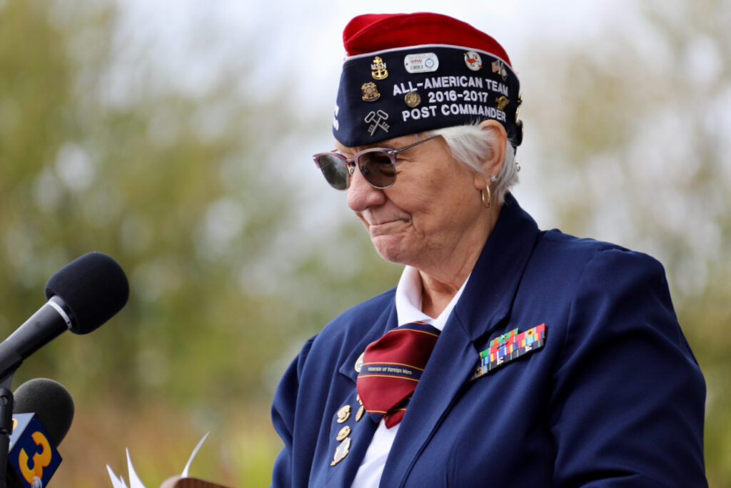 Retired U.S. Navy Reserve Chief Kathleen Goodall, a board member of the Hampton Roads Council of Veterans Organizations, served as grand marshal of the 2024 Tidewater Veterans Day Parade and delivered remarks during the ceremony that followed it on Monday, Nov. 11, 2024, at the Virginia Beach Oceanfront. [John-Henry Doucette/The Princess Anne Independent News]